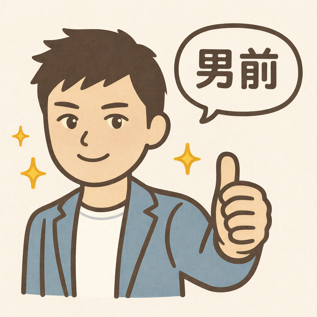 以下、「男前」を使った例文20個を英訳付きでお届けします。