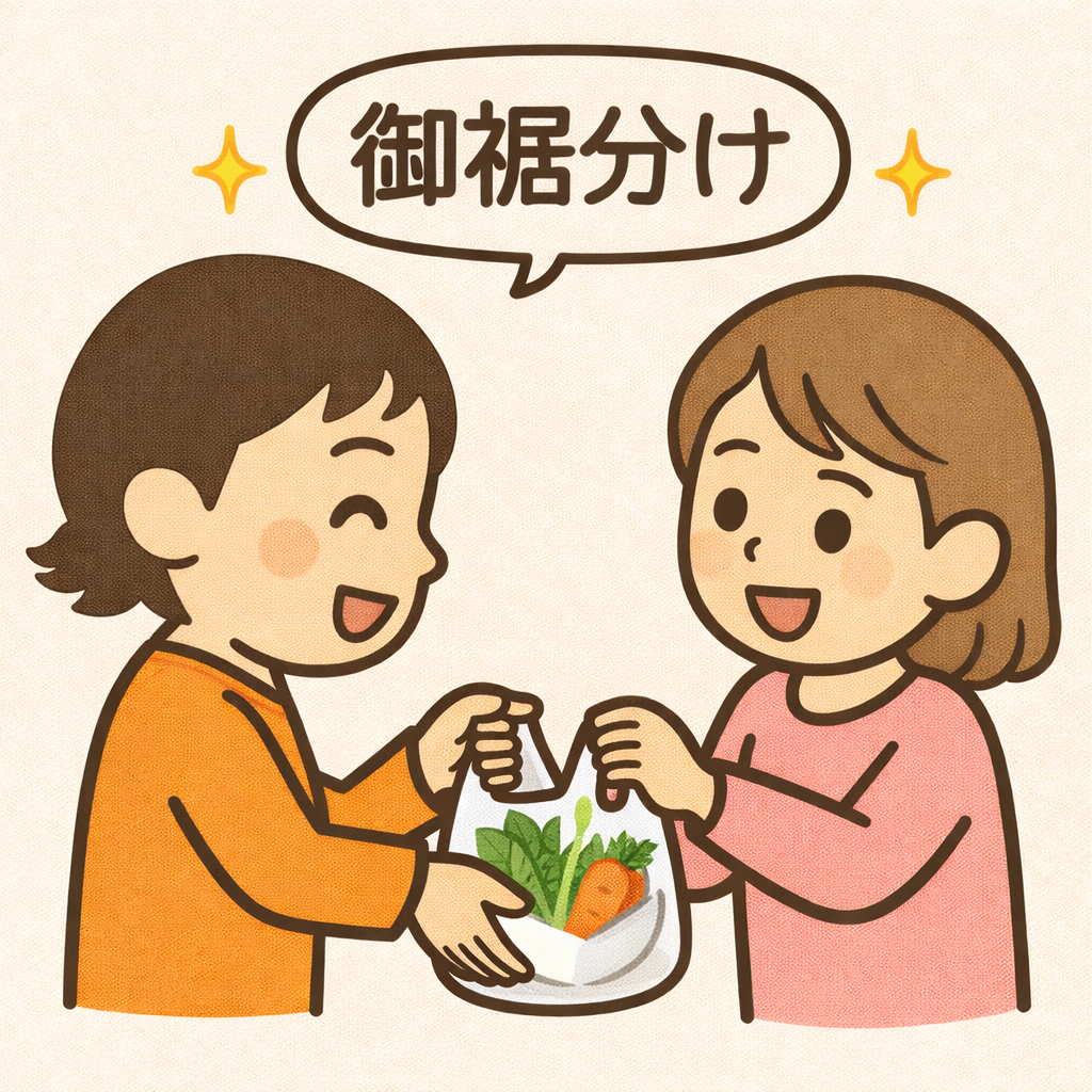 これらの会話例は、日本の日常生活における「御裾分け」の自然な使い方を示しています。