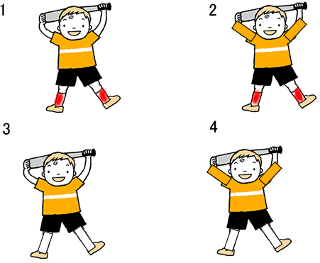 質問:お母さんと男の人が話しています。男の人の格好はどうですか?