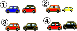 質問:男の人と女の人が話しています。女の人の車はどれですか? 男:車買ったの? 女:うん。小さいのだけど。 男:日本のですか? 女:いいえ、中国のです。あそこにありますよ。 男:あの黒い車ですか? 女:いいえ、あれは兄のです。 男:じゃあ、その後ろにある赤い車ですか? 女:いいえ、違います。兄の車の前にあるのが私の車です。 質問:女の人の車はどれですか? 答え: 1
